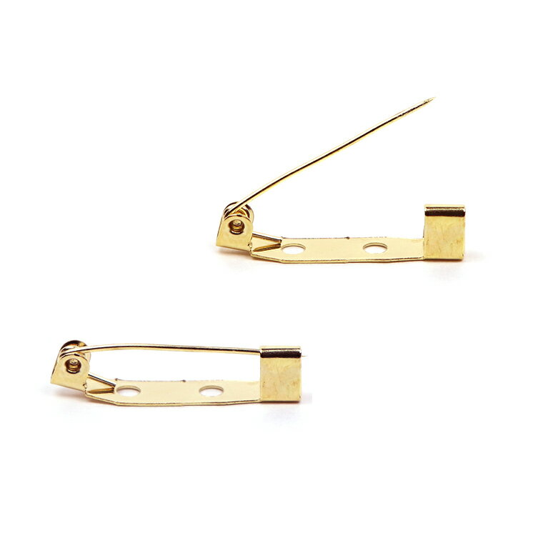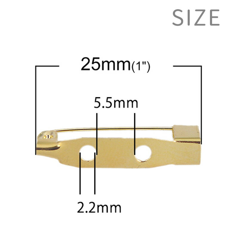 【在庫限り】約25×5mm 10個入 ブローチピン 2つ穴 ゴールド / 金メッキコサージュ 安全ピン ウラピン 造花ピン 金具 パーツ ハンドメイド資材 ゴールド【ゆうパケット対応】
