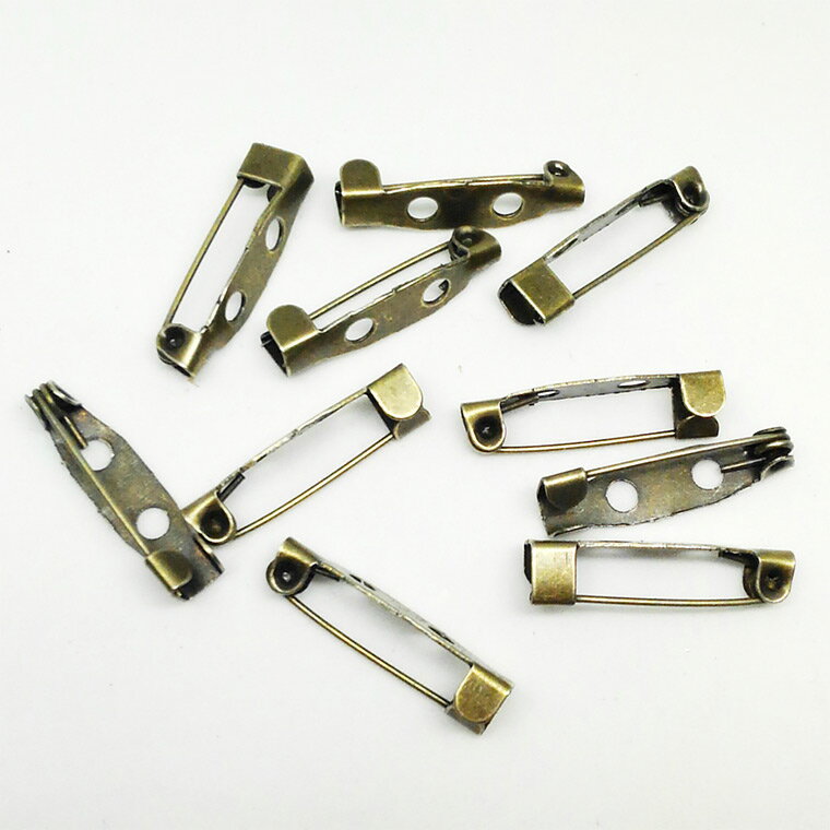 約20×5mm 10個入 ブローチピン 2つ穴 銅古美 / コサージュ 安全ピン ウラピン 造花ピン 金具 パーツ ハンドメイド資材 ブロンズ【ゆうパケット対応】