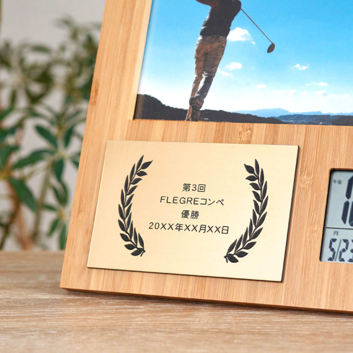 商品情報 【名入れOK!(記章)竹の節目フォトフレーム】 ■天然素材の竹を使用 カレンダーと温度計の機能を搭載した、 時計付きで見た目も おしゃれ で使い勝手も大満足のフォトフレームです♪